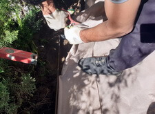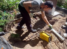 Затем нам предстояло разрешить следующую проблему – провалившийся цветник. Для этого мы удалили верхний слой грунта, и сварили жёсткий каркас из металлической сетки, который больше не позволит конструкции просесть.