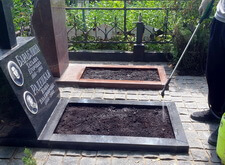 Пока семена всходили, мы восстановили надписи на памятниках, а также протёрли сами надгробья специальной жидкостью, защищающей гранит.
