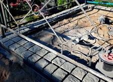 Под опоры ограждения в брусчатке были вырезаны соответствующие отверстия. Таким образом мы обошлись без ненужных сдвигов и неровных линий, получившийся периметр смотрелся одним целым.