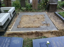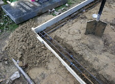 Первое, что мы делаем – этом демонтируем всё, что находилось на участке. Затем устанавливаем по периметру места захоронения надёжный цоколь, основывающийся на армированном каркасе.